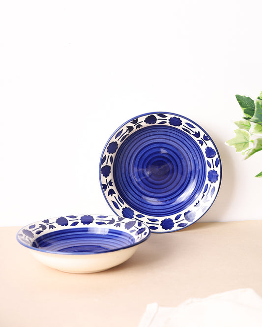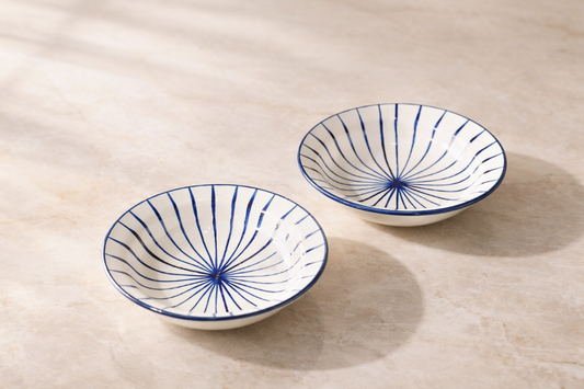 Indigo Geometrical flat bowl (set of 3)
