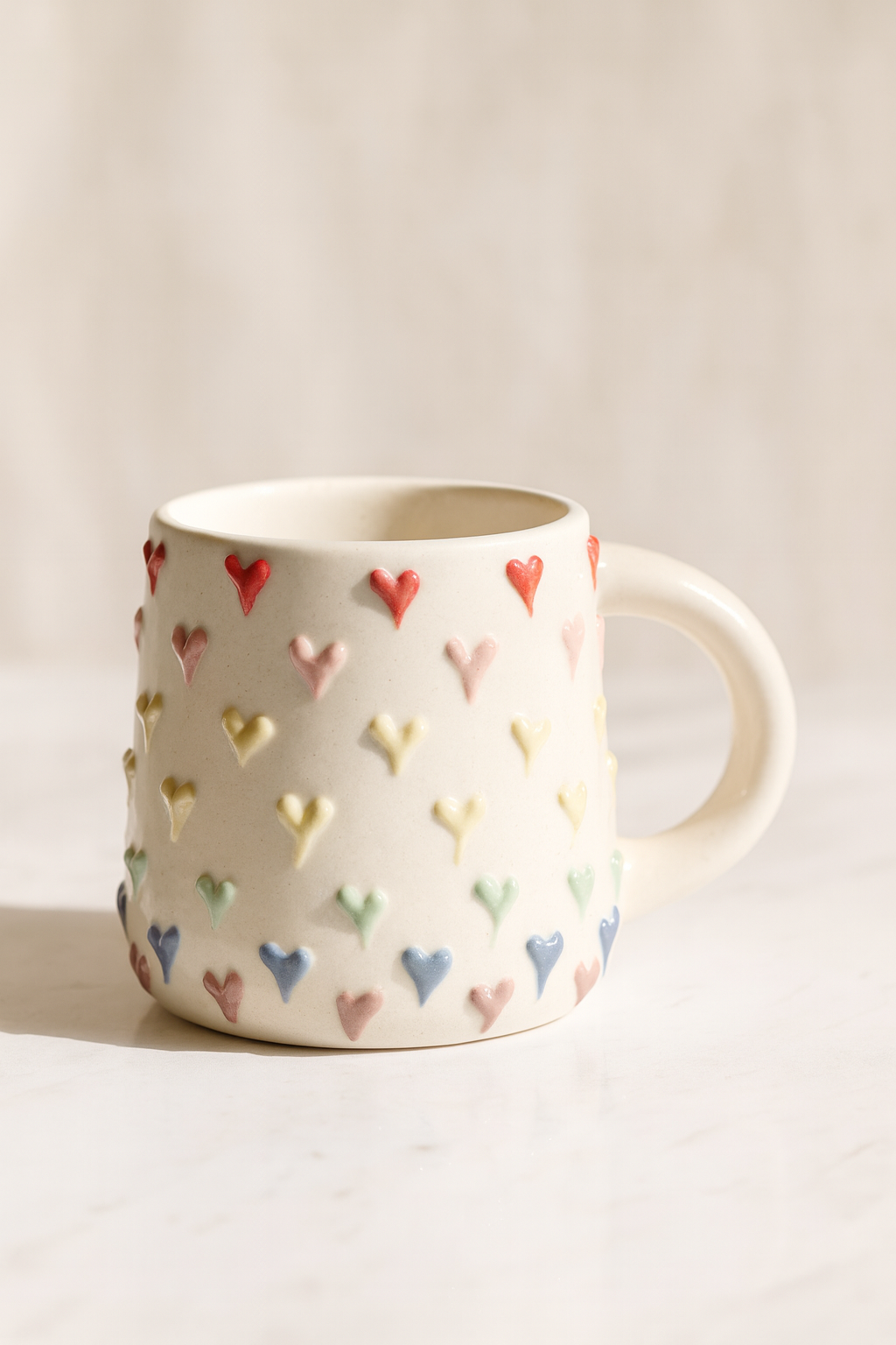Ceramic cups for everyday use. Cleaning these cups is a breeze. They are dishwasher and microwave-safe. The vibrant heart colors ensure long-lasting beauty.